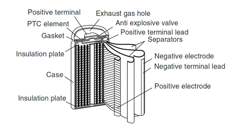 Die Struktur einer typischen zylindrischen Batterie umfasst eine Hülle, eine Kappe, eine positive Elektrode, eine negative Elektrode, ein Diaphragma, einen Elektrolyten, ein PTC-Element, eine Dichtung, ein Sicherheitsventil usw. Im Allgemeinen ist die Batteriehülle der negative Pol der Batterie, die Kappe der Pluspol der Batterie, und das Batteriegehäuse nimmt eine vernickelte Stahlplatte an.